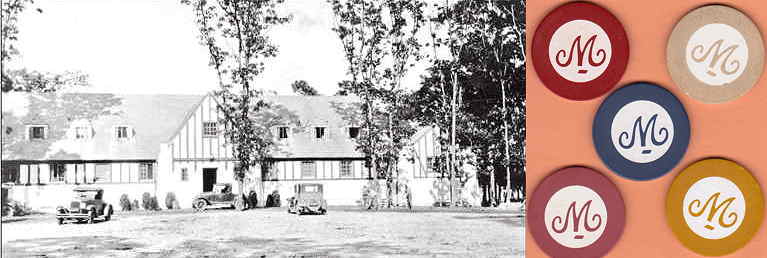 | Carl Fisher's Montauk gambling club building, the source of these "M" gambling chips: 1928 photo of the Montauk Island Club. (source.)