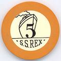 color as shown. � see the story in US-45, above. Click here for pictures of the boat and news clippings. The final raid against the Rex was led by California Atty General Earl Warren, who later became Chief Justice of the U.S. Supreme Court. � these chips for the Rex were initially shipped from the US Playing Card Co to B C Wills Co, Detroit (the large gambling supply house), in April 1938. |